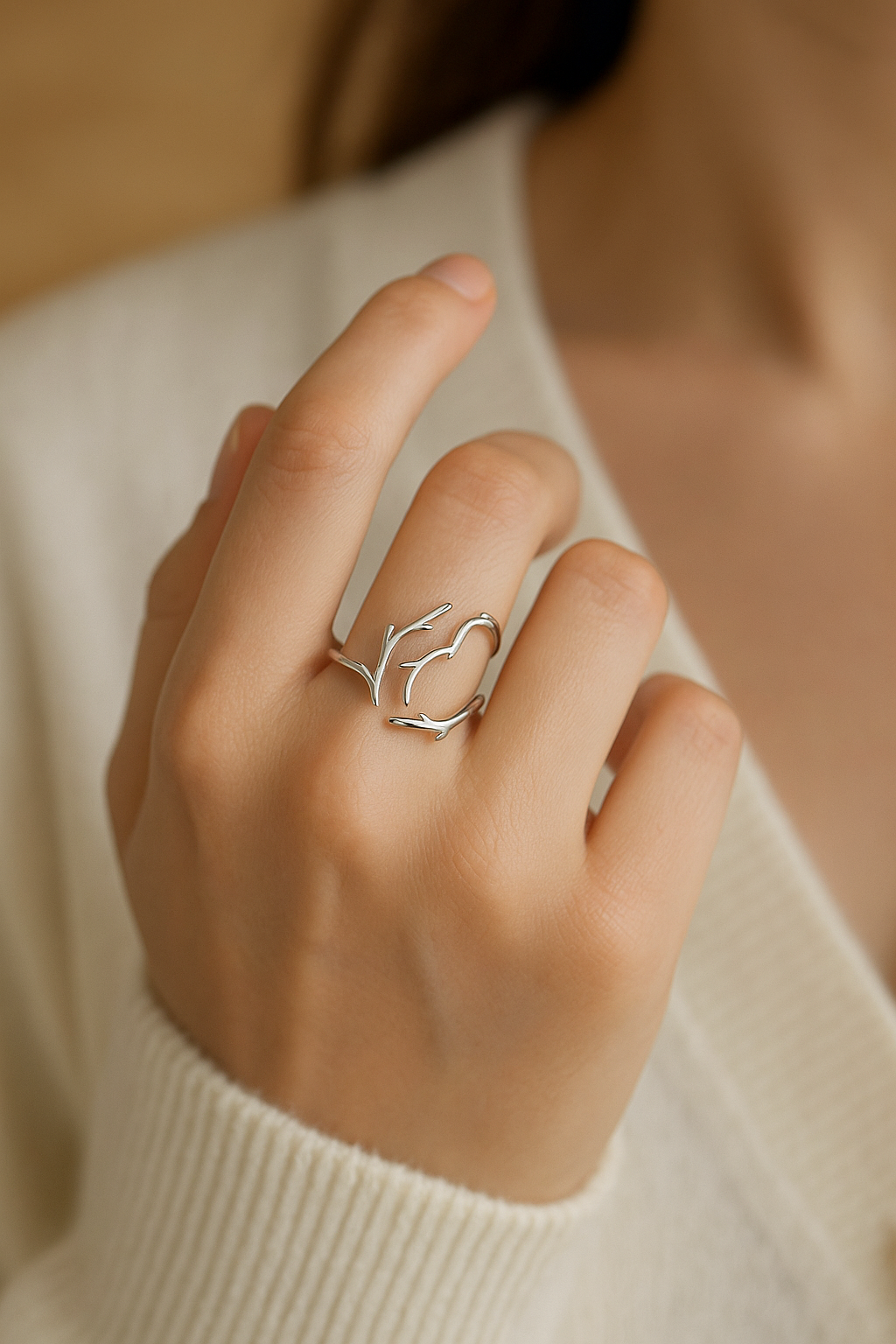 Denna förfinade ring för naturen subtilt runt ditt finger. Den öppna designen med kviststruktur utstrålar elegans och enkelhet, vilket gör den till ett tidlöst smycke som passar vid varje tillfälle.