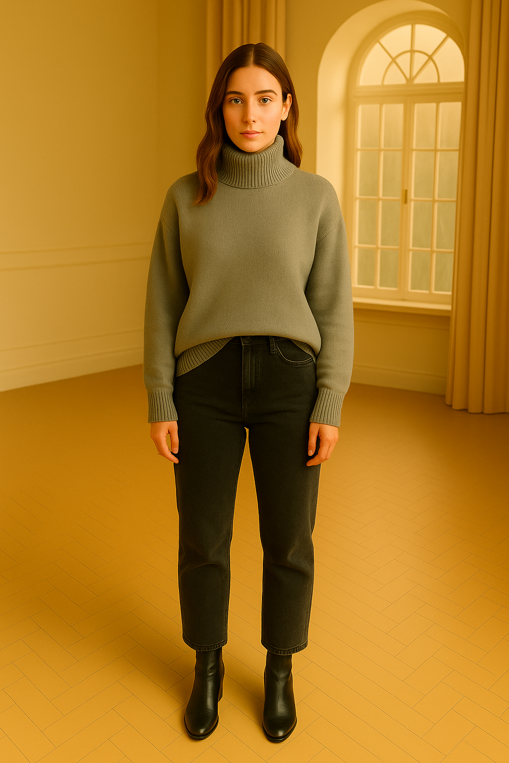 En mjuk, oversized polotröja som kombinerar värme och stil utan ansträngning. Med den höga kragen och avslappnade passformen är detta den perfekta stickade tröjan för att tillbringa kalla dagar i komfort och elegans.